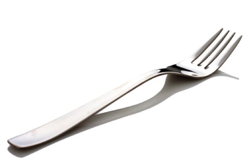 MEANING: An implement with two or more prongs used for lifting food to the mouth or holding it when cutting.